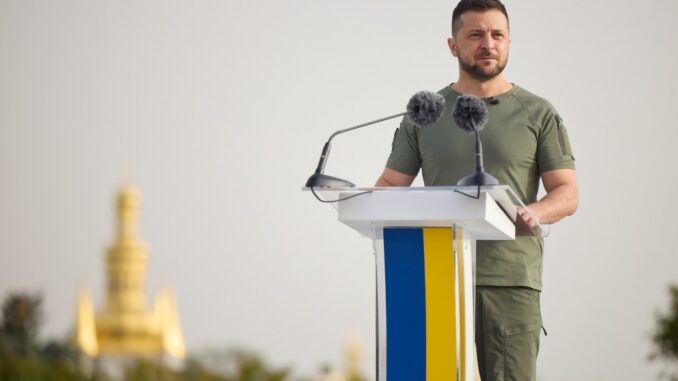 Tổng thống Volodymyr Zelensky phát biểu ở Kiev hôm 23/8. Ảnh: CNN.