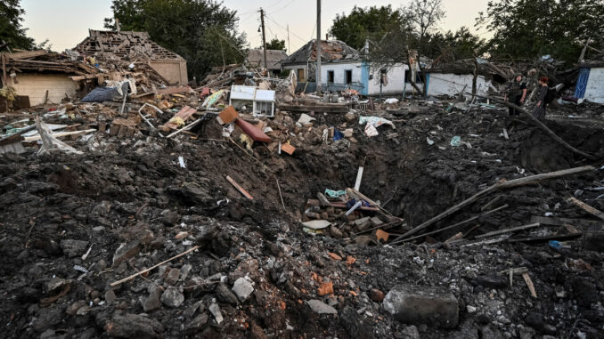 Hiện trường sau vụ tập kích thị trấn Chaplyne ở tỉnh miền trung Dnipro của Ukraine hôm 25/8. Ảnh: Reuters.