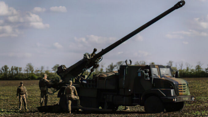 Binh sĩ Ukraine vận hành một khẩu pháo CAESAR do Pháp chuyển giao. Ảnh: BQP Ukraine.