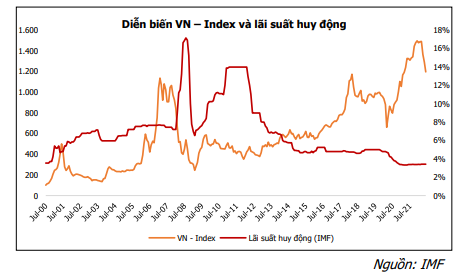 Nhìn lại lịch sử, kể từ khi TTCK Việt Nam thành lập, NHNN đã có nhiều lần nâng lãi suất chủ yếu qua việc siết chặt chính sách tiền tệ để kiềm chế lạm phát. Đội ngũ phân tích nhận thấy VN – Index có sự tương quan chặt chẽ với diễn biến lãi suất và điều đó thể hiện qua một số giai đoạn cụ thể.