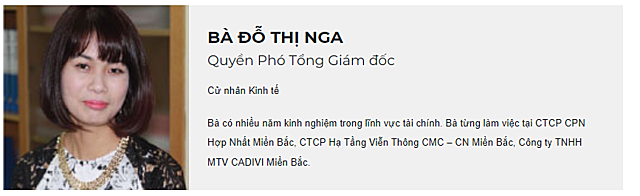 Trước đó, bà Đỗ Thị Nga được bổ nhiệm vị trí này từ ngày 7/2. Trước khi đảm nhận vị trí này, bà Nga từng là Kế toán trưởng Chứng khoán Trí Việt. Theo thông tin từ doanh nghiệp, bà Nga có nhiều năm kinh nghiệm trong lĩnh vực tài chính, từng làm việc tại CTCP CPN Hợp Nhất miền Bắc, CTCP Hạ Tầng Viễn Thông CMC – CN miền Bắc và công ty TNHH MTV CADIVI miền Bắc.