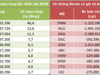 Khối ngoại có phiên bán ròng thứ 5 liên tiếp trên HoSE với giá trị giảm 30% so với phiên trước và ở mức 389 tỷ đồng, tương ứng khối lượng 8 triệu cổ phiếu. Tính tổng cộng cả 5 phiên giao dịch vừa qua, dòng vốn ngoại sàn HoSE bán ròng 1.482 tỷ đồng.