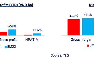 Thiên Long ghi nhận doanh thu thuần hơn 2.500 tỷ đồng, tăng 48%; lãi sau thuế 396 tỷ đồng, tăng 137% so với 8 tháng 2021. Biên lãi gộp ở mức 44,1% và biên lãi thuần đạt 15,7%, trong khi cùng kỳ năm ngoái lần lượt là 41,4% và 9,8%.