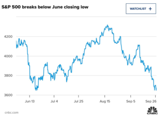Kết thúc phiên 26/9, chỉ số S&P 500 chạm mức thấp nhất năm 2022 và Dow Jones cũng rơi vào thị trường giá xuống, trong bối cảnh lãi suất tăng cùng các đồng tiền tệ trên toàn cầu biến động.