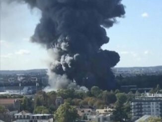Một cột khói đen cuồn cuộn bao trùm khắp Paris hôm 25/9 từ một nhà kho bốc cháy ở khu chợ nông sản lớn tại vùng ngoại ô phía Nam thủ đô Pháp.