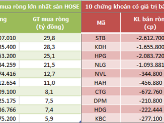 Khối ngoại có phiên bán ròng thứ 7 liên tiếp trên HoSE với giá trị gấp 40 lần phiên trước và ở mức 162 tỷ đồng, tương ứng khối lượng 2,9 triệu cổ phiếu.