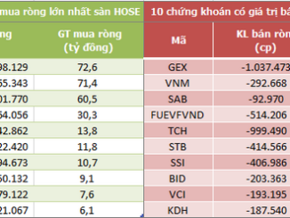 Khối ngoại tiếp tục mua ròng hơn 170 tỷ đồng ở sàn HoSE (xấp xỉ phiên trước), tương ứng khối lượng mua ròng là 13 triệu cổ phiếu.
