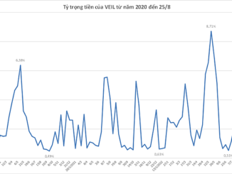 Tỷ trọng tiền mặt tại quỹ ngày 25/8 ở mức 0,55%, tương ứng giá trị tiền đạt 11,8 triệu USD (khoảng 275 tỷ đồng).
