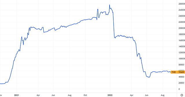 Trên thị trường chứng khoán, kết thúc phiên giao dịch ngày 9/9 cổ phiếu THD có giá 55.600 đồng/cp, giảm gần 80% so với đầu năm.