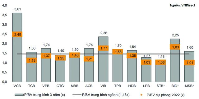 Hầu hết các ngân hàng đều đang được định giá dưới mức P/BV trung bình 3 năm.