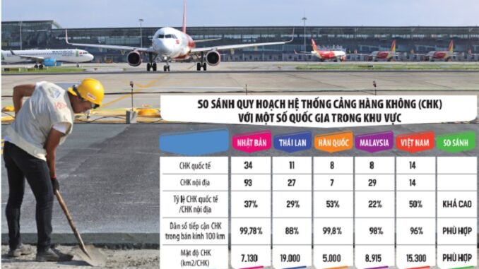 Như vậy, trong giai đoạn 2021 – 2030, mạng cảng hàng không được quy hoạch theo mô hình trục nan với 2 đầu mối chính tại khu vực Thủ đô Hà Nội và khu vực TP.HCM, hình thành 28 cảng hàng không bao gồm: 14 cảng hàng không quốc tế (Vân Đồn, Cát Bi, Nội Bài, Thọ Xuân, Vinh, Phú Bài, Đà Nẵng, Chu Lai, Cam Ranh, Liên Khương, Long Thành, Tân Sơn Nhất, Cần Thơ và Phú Quốc); 14 cảng hàng không quốc nội (Lai Châu, Điện Biên, Sa Pa, Nà Sản, Đồng Hới, Quảng Trị, Phù Cát, Tuy Hòa, Pleiku, Buôn Ma Thuột, Phan Thiết, Rạch Giá, Cà Mau và Côn Đảo).