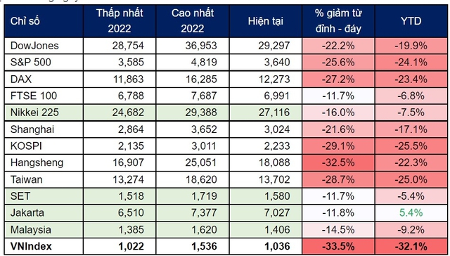 Trên thị trường chứng khoán, VN-Index đã ghi nhận 6 tuần giảm liên tiếp và mức giảm được ghi nhận là mạnh thứ 2 trong năm 2022. Theo ông, dư địa giảm của thị trường có còn nhiều, xu hướng cân bằng sẽ tìm được dựa trên những tiêu chí nào?