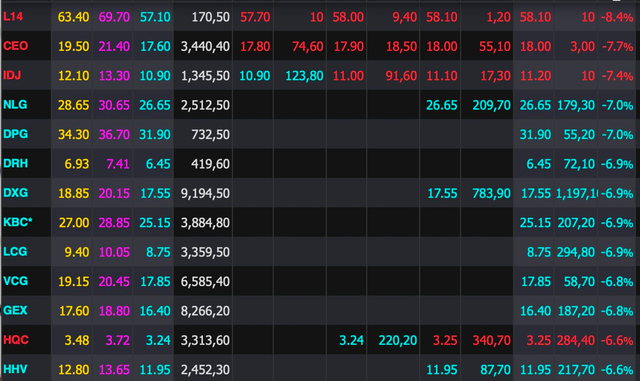 Cổ phiếu chứng khoán cũng ghi nhận nhiều mã giảm hết biên độ