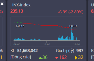 Thị trường chứng khoán ghi nhận phiên giảm điểm mạnh nhất châu Á với mức giảm gần 39 điểm, tương đương -3,59%, xuống mức 1.035,91 điểm, thấp nhất trong vòng hơn 20 tháng kể từ ngày 1/2/2021.