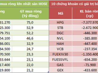 Khối ngoại mua ròng trở lại 226 tỷ đồng trên HoSE, tương ứng khối lượng mua ròng là 9,9 triệu cổ phiếu. HPG bị bán ròng mạnh nhất với 140 tỷ đồng.
