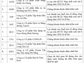Đây chủ yếu là những cổ phiếu quen thuộc nằm trong diện bị cảnh báo; kiểm soát hoặc do doanh nghiệp có lợi nhuận của cổ đông công ty mẹ/LNST trên BCTC hợp nhất soát xét 6 tháng năm 2022 là số âm.