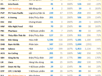 Những doanh nghiệp tăng trưởng lợi nhuận cao nhất quý 3 chủ yếu là các công ty thuỷ điện, bất động sản, phân bón, hoá chất, F&B, dược phẩm, …