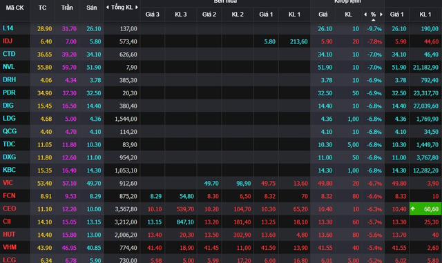 Nhiều cổ phiếu bất động sản tiếp tục giảm sàn ngay đầu phiên 8/11