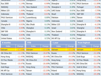 VN-Index đã xác lập một kỷ lục buồn khi đứng đầu bảng xếp hạng chỉ số giảm mạnh nhất thế giới trong tất cả các khung thời gian phổ biến gồm 1 tuần, 1 tháng, 1 quý, 6 tháng, 1 năm, từ đầu năm 2022 và từ đỉnh.