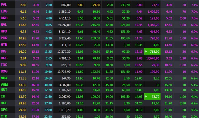 Cổ phiếu bất động sản – xây dựng đồng loạt tăng trần (tính tới 14h10p phiên 20/2)
