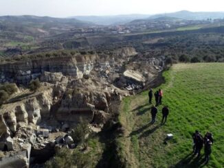 Một khu vườn ô liu xanh tốt ở Thổ Nhĩ Kỳ đã bị chia cắt bằng vết nứt dài khoảng 300m, rộng 50m, sâu đến 40m sau trận động đất hồi đầu tuần trước.