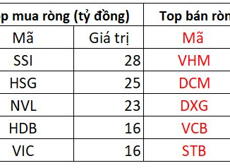 Trên HoSE, khối ngoại bán ròng với giá trị khoảng 91 tỷ đồng, bán mạnh VHM, DCM trong khi mua ròng SSI.