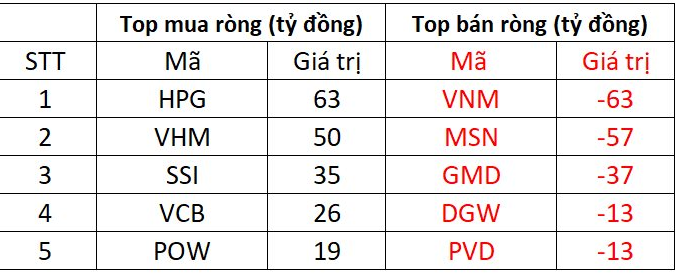 Tại chiều mua, HPG được mua ròng mạnh nhất với giá trị 63 tỷ đồng. Bên cạnh đó, VHM xếp tiếp theo danh sách mua ròng mạnh trên HoSE với 50 tỷ đồng. Ngoài ra, khối ngoại cũng mua ròng SSI và VCB với giá trị là 35 và 26 tỷ đồng.