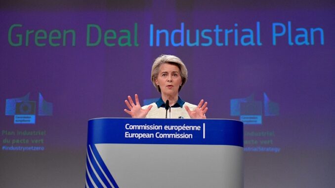 | Chủ tịch Ủy ban châu Âu Ursula von der Leyen đề xuất Đạo luật Công nghiệp Net-Zero, một trụ cột của Kế hoạch Công nghiệp Thỏa thuận Xanh của EU. Nguồn: FDI |