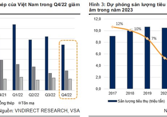 Trong bối cảnh giá nguyên liệu tăng cao, sức cầu yếu và 3/4 lò cao của Hòa Phát vẫn đang ngừng hoạt động, VNDirect cho rằng lợi nhuận ròng của Hòa Phát vẫn sẽ âm trong quý 1/2023 và cải thiện trong quý 3/2023.