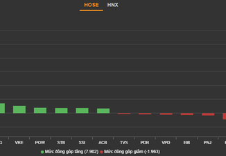 Giá trị giao dịch trên HOSE phiên hôm nay giảm nhẹ 15% so với phiên hôm trước xuống 8.300 tỷ đồng.