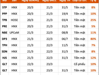 Trong 22 doanh nghiệp trả cổ tức tiền mặt, tỷ lệ chi trả cao nhất là 80% và thấp nhất là 5%.