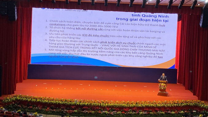 Đơn cử như ở Cảng Container quốc tế Cái Lân – vốn là cảng được đầu tư để đón hàng container nhưng sản lượng thông quan vẫn chủ yếu là hàng rời (dăm gỗ, viên nén gỗ, vôi bịch, quặng,…). “Dù năm 2022 đã thu hút được 2 hãng tàu container lớn của thế giới là Maersk Line và SITC, nhưng tần suất mới là 1 tuần/1 chuyến”, PGS.TS Hồ Thị Thu Hoà, Viện trưởng Viện Nghiên cứu và phát triển Logistics Việt Nam cho biết.