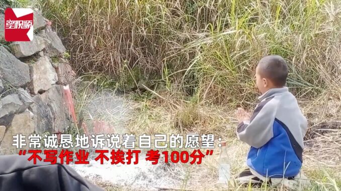 Trong bài đăng được chia sẻ trên mạng xã hội Trung Quốc tuần này, cậu bé thành kính chắp tay cầu khấn trước mộ khi cùng cả gia đình tới viếng người bà quá cố. “Cháu mong không phải làm bài tập về nhà, cũng không bị bố mẹ đánh nữa và luôn đạt điểm tối đa ở trường”, cậu bé nói.