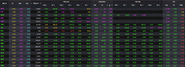 Nhóm chứng khoán vẫn hút dòng tiền, cổ phiếu tăng mạnh. SSI tiếp tục có thanh khoản cao nhất toàn sàn (688 tỷ đồng) và VND đứng thứ 2 với 649 tỷ đồng. Mức thanh khoản này bỏ xa cổ phiếu đứng thứ 3 là STB (473 tỷ đồng). Nhóm chứng khoán có APS, PSI, BSI, ORS tăng trần. Sau tin hạ lãi suất điều hành, cổ phiếu chứng khoán đặc biệt hút dòng tiền. Động thái giảm lãi suất của Ngân hàng Nhà nước được cho tạo tác động tích cực tới thị trường chứng khoán. Cổ phiếu chứng khoán theo đó khởi sắc mạnh mẽ.