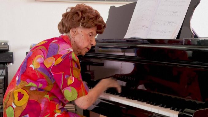 Nghệ sĩ piano người Pháp Colette Mazet chơi đàn tại căn hộ ở Paris ngày 24/3. Video: AFP