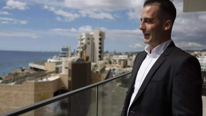Florent Gastine, nhân viên môi giới bất động sản người Pháp, nhìn ra biển từ ban công một căn hộ ở Limassol ngày 20/3. Ảnh: AFP