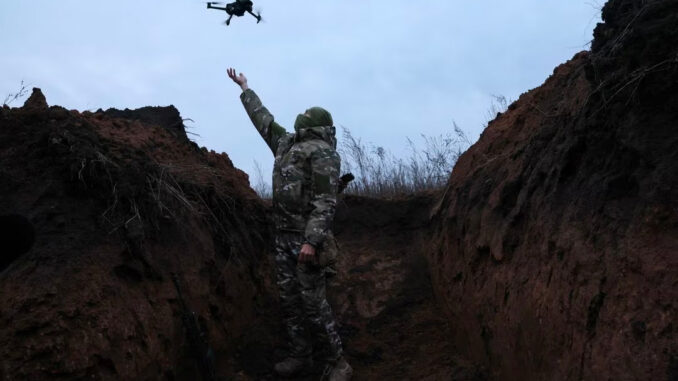 Một lính Ukraine thử nghiệm chiếc UAV tại Bakhmut, Ukraine hồi tháng 11/2022. Ảnh: Reuters