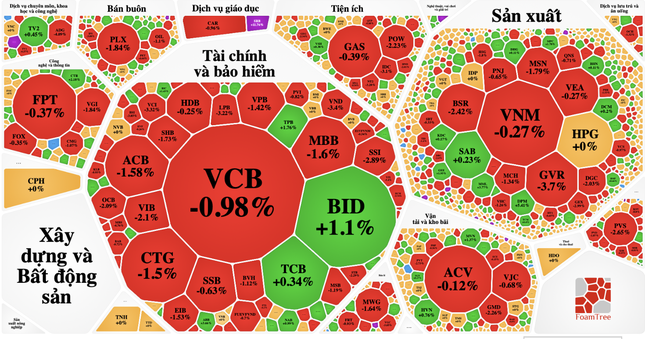 Nhóm vốn hoá lớn kéo VN-Index giảm mạnh cuối phiên.