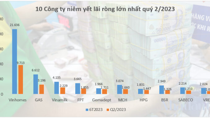 Thống kê báo cáo tài chính của các công ty niêm yết trên sàn chứng khoán cho thấy, CTCP Vinhomes (mã: VHM) là doanh nghiệp dẫn đầu trong top 10 doanh nghiệp ghi nhận lợi nhuận sau thuế nghìn tỷ trong quý 2/2023.