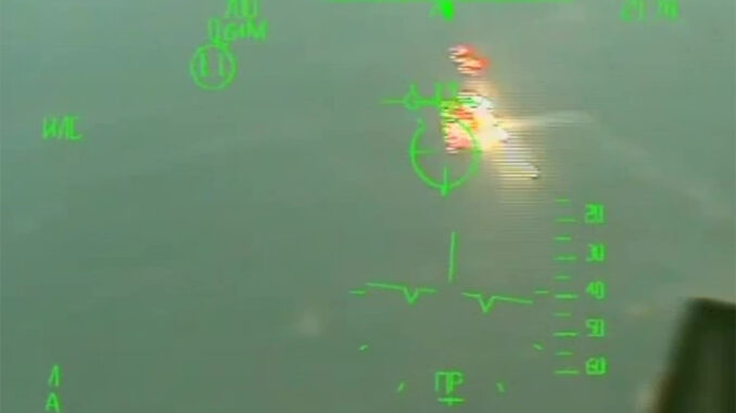Tiêm kích Nga nã pháo nhằm vào xuồng cao tốc Ukraine gần Đảo Rắn ngày 22/8. Video: BQP Nga