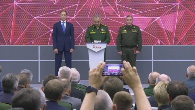 Bộ trưởng Shoigu khẳng định các tập đoàn quốc phòng Nga đã thích nghi tốt với áp lực từ những lệnh trừng phạt ngặt nghèo của phương Tây, đồng thời tăng tốc độ xuất xưởng vũ khí gấp nhiều lần so với giai đoạn trước chiến sự.