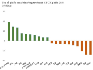 Trên sàn HoSE, tự doanh CTCK ghi nhận mua ròng nhẹ 10 tỷ đồng, trong đó mua ròng 54 tỷ đồng trên kênh khớp lệnh, còn lại bán 44 tỷ đồng trên kênh thỏa thuận.