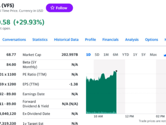 Với giá đóng cửa 82,35 USD, thấp hơn một chút so với giá mở cửa 84 USD, cổ phiếu VinFast (VFS) đã có cây “nến đỏ” tiếp theo.