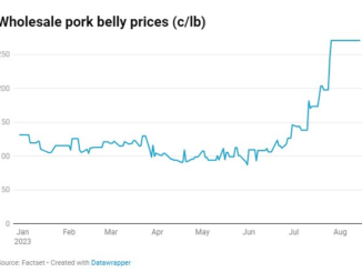 Tại Mỹ, giá thực phẩm này đã tăng từ 131,59 cent mỗi pound vào tháng 1/2023 lên 270,89 cent mỗi pound vào cuối tháng 7 vừa qua.