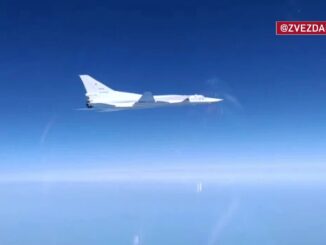 Tiêm kích Su-27 hoặc Su-35S Nga áp sát, buộc chiến đấu cơ NATO đổi hướng trong quá trình hộ tống oanh tạc cơ chiến lược tuần tra Bắc Cực.