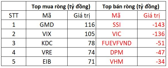 Tại chiều mua, cổ phiếu GMD được mua ròng mạnh nhất với giá trị 116 tỷ đồng; VIX xếp tiếp theo trong danh sách mua ròng mạnh với giá trị khoảng 105 tỷ đồng. Ngoài ra, KDC, VRE, EIB cũng được mua ròng mạnh trên 70 tỷ mỗi cổ phiếu.