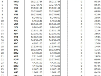 Trên HOSE, khối ngoại bán ròng với giá trị xấp xỉ 477 tỷ đồng, VIC chịu áp lực bán mạnh nhất của khối ngoại với giá trị 136 tỷ đồng; theo sau VRE, SSI, VPB và VHM bị bán ròng trên 40 tỷ đồng mỗi cổ phiếu.