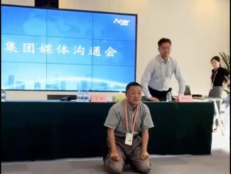 Chủ tịch Thôi Nguy của Pomegranate Real Estate, công ty phát triển bất động sản ở Bắc Kinh – Trung Quốc, gây chú ý khi quỳ xuống thề “lấy sinh mạng bảo đảm” không vỡ nợ.