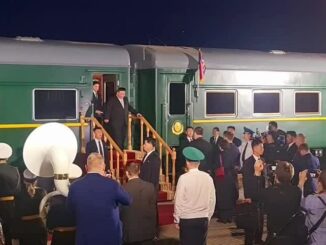 Truyền thông Nga công bố video giới chức nước này cùng đội danh dự đón lãnh đạo Triều Tiên Kim Jong-un xuống tàu ở vùng Primorsky.
