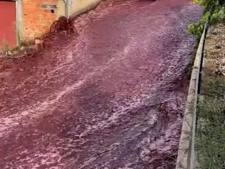 2,2 triệu lít rượu vang tràn ra từ thùng chứa bị nổ của nhà máy khiến con đường của một thị trấn tại Bồ Đào Nha trở thành dòng sông đỏ.
